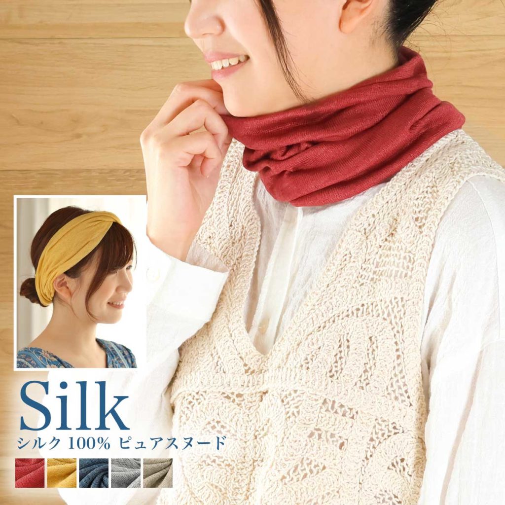 シルクのインナーは、サラサラ快適で汗のニオイも軽減してくれ、冷房の中でも冷えすぎず、優しく温めてくれます。