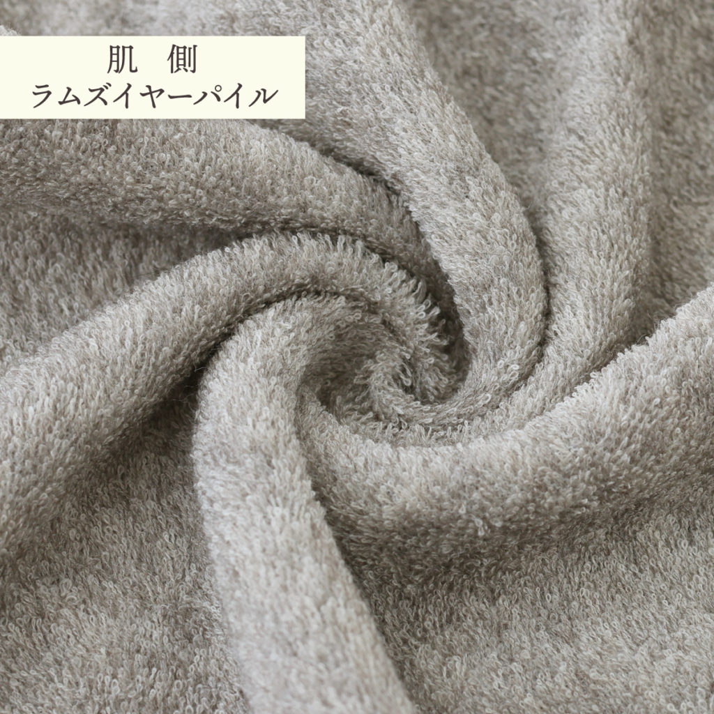 内側はふわふわフカフカのパイル地になっていてとっても温かく、肩周りの縫い目は外側になっているのでストレスフリーな着心地です。
