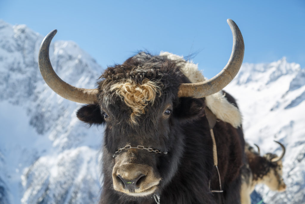 ヤクはウシの仲間で、ヒマラヤ山脈等の標高3000m以上の高地に生息しているため、寒さに強い動物です。