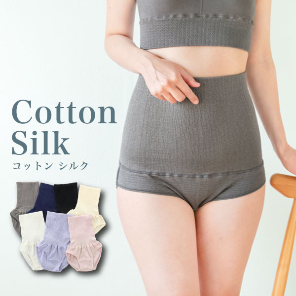 柔らかく肌当たりの優しい素材の下着にすっぽりと包み込まれる心地良さは、疲れを癒やしてくれます。また、ウエスト部分が腹巻になっているショーツは、重ね着のわずらわしさを軽減してくれます。