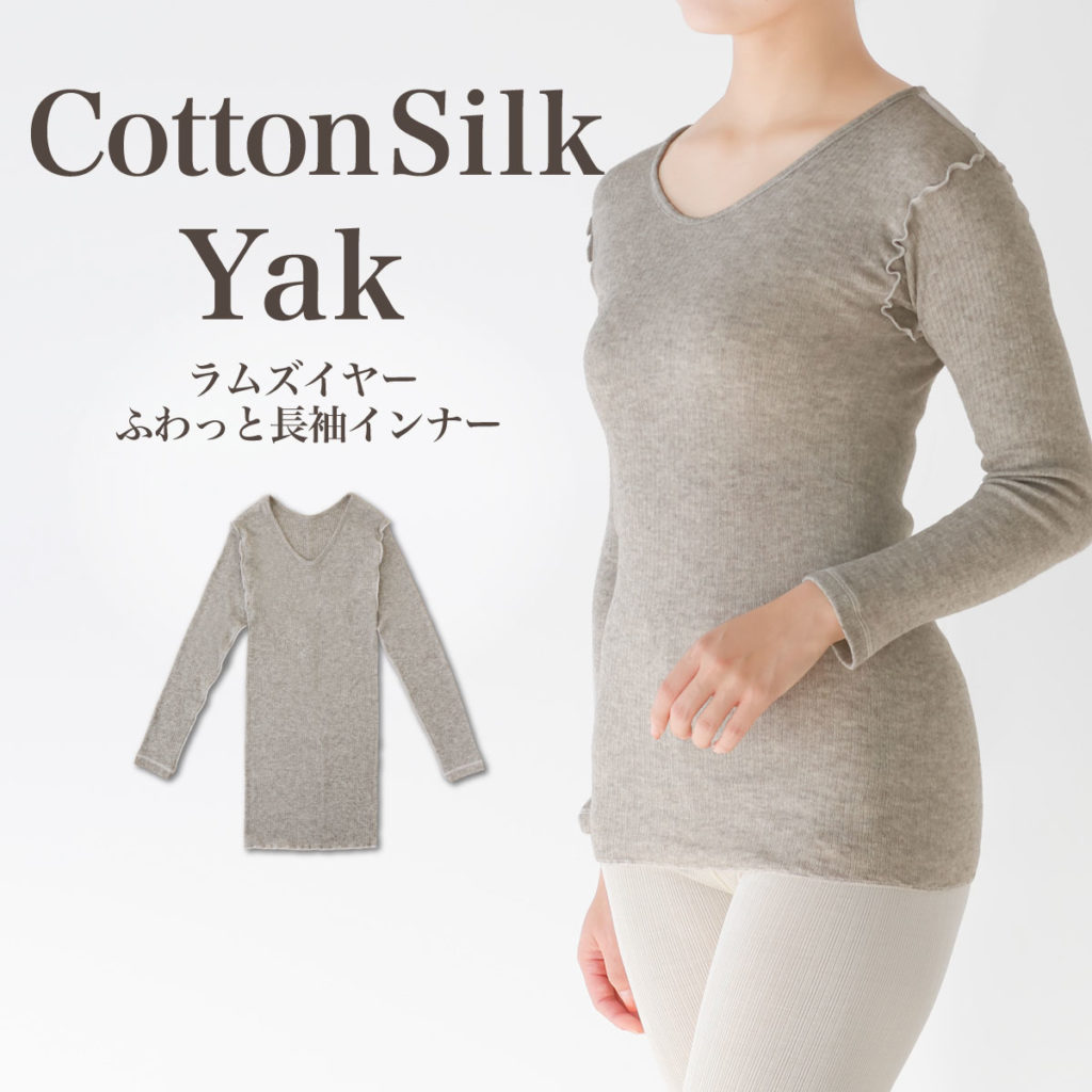 ふわっと長袖インナーやカモミール8分袖インナーのような薄地で軽い着心地のインナーは、重ね着で肩がこりやすい方にもおすすめです。