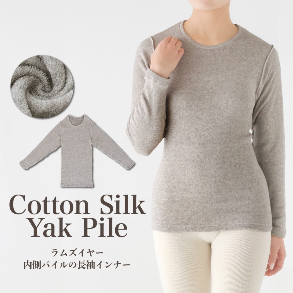足元が冷えると体全体が寒くなるので、やはり温かいウールのボトムスが人気です。優しい肌当たりですが、シルクを1枚目に履いて重ねるとさらに快適度がアップします。