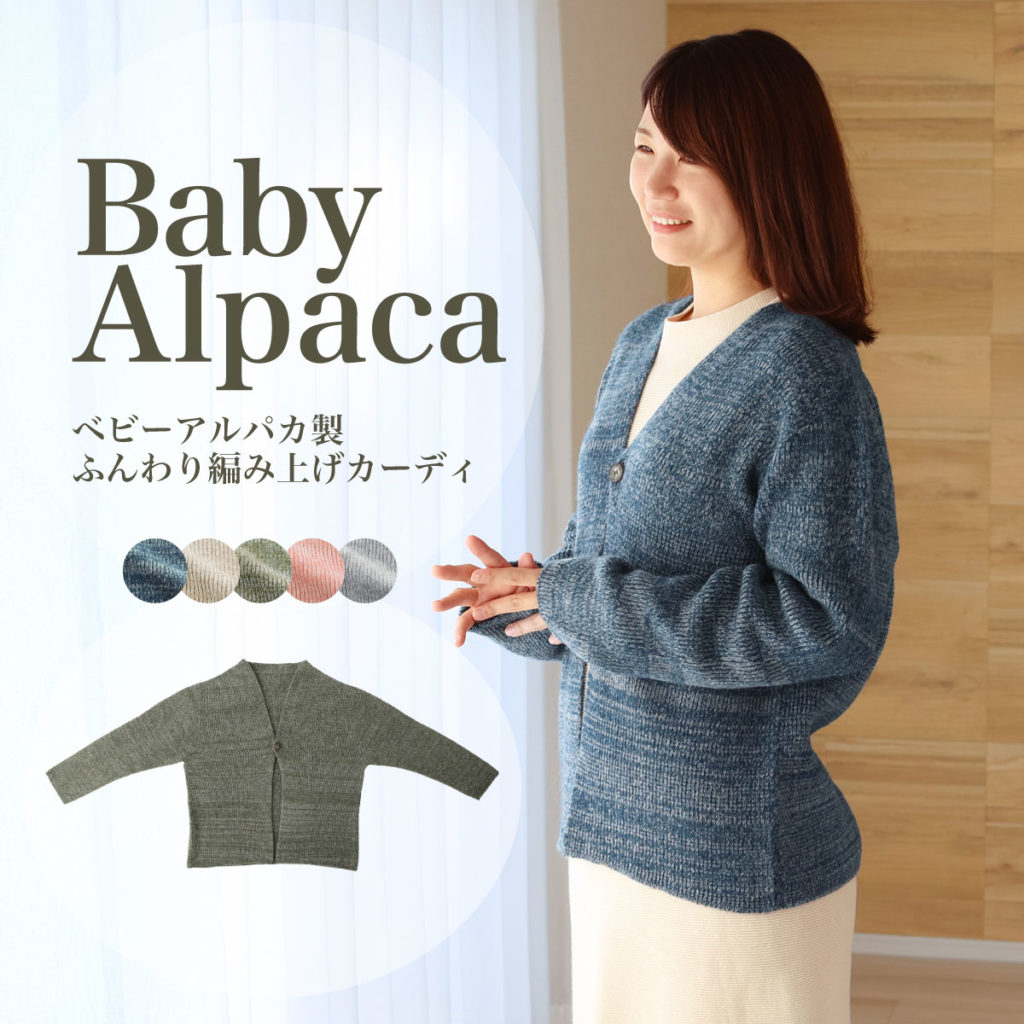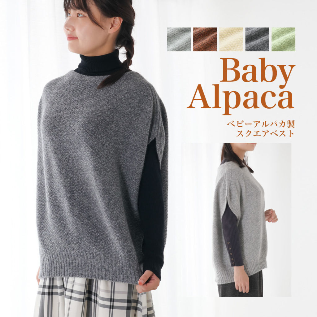 アルパカやウールのアイテムは、ふわっと体の周りに温かい空気の層を作ってくれ、冷気をさえぎってくれます。重ね着が重くてしんどい方には、軽い着心地のベビーアルパカ製品がおすすめです。
