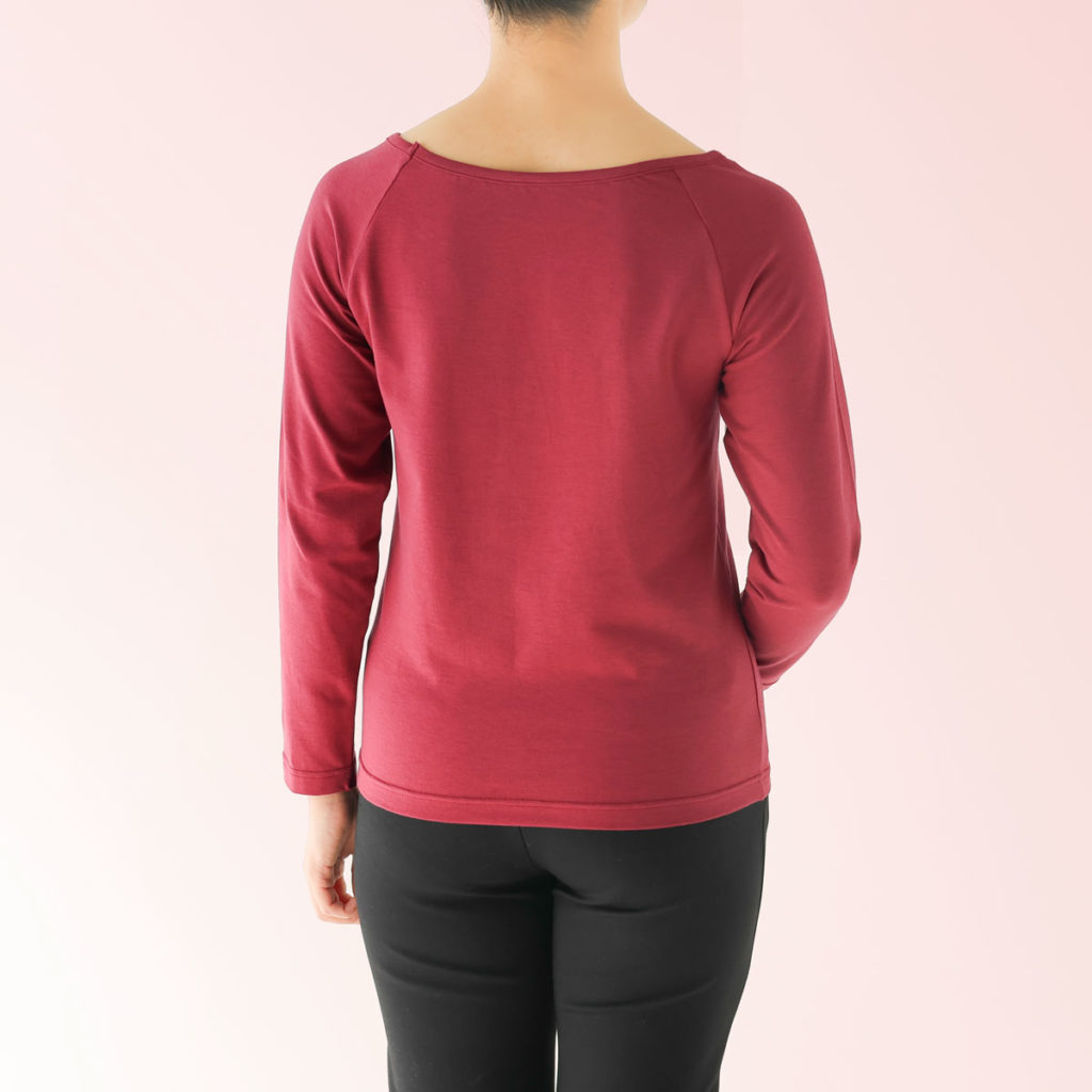 その1 広めの襟刳りでアウターに響かない