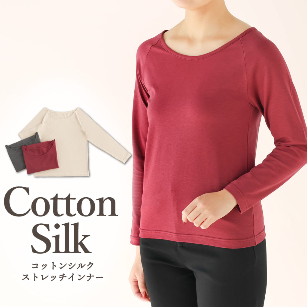 様々な種類のインナーがございますが、今回ご紹介したいのは2月に新登場した「コットンシルクストレッチインナー」です。